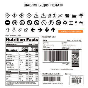 - Больше чем 200 специальных символов и шаблонов этикеток;