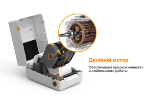 Принтер печатает при помощи технологии термотрансферной печати – введённая пользователем информация переносится на поверхность наклейки под воздействием температуры, что придаёт готовой этикетке хорошие показатели износоустойчивости и отличное качество печати.